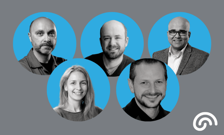 From left to right: Sylvain Baillet, James Carmichael, Shehroz Khan, Derya Sargin, and Nathan Spreng