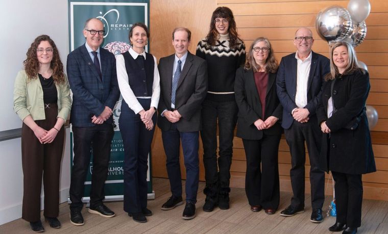 PHOTO: (From Left) Naomi Sager, Dr. David Anderson , Dr. Viviane Poupon, Dr. James Fawcett, Annika Benson, Dr. Jennifer Bain, Dr. Victor Rafuse, Kerri McPherson at Dalhousie University on Friday, December 5, 2025.